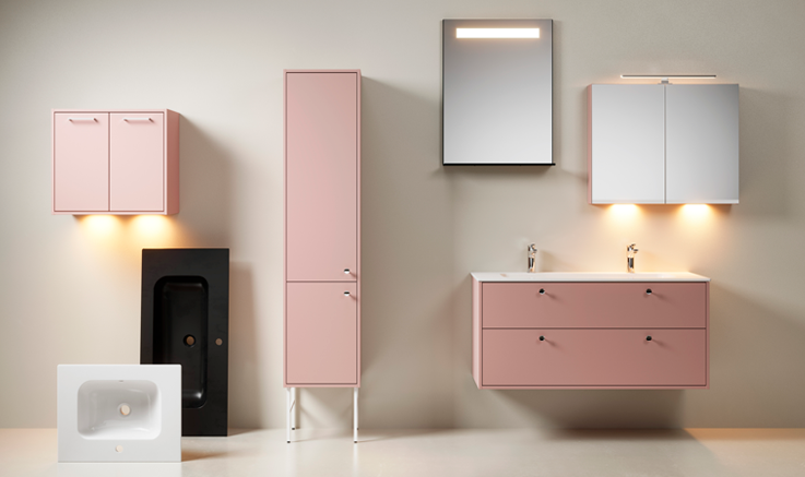 Põhjamaiselt minimalistlik Gustavsberg üllatab uue Artic vannitoamööblisarja nelja värvitooniga: soe virsikuroosa, jahe tuhahall, matt must ja klassikaline valge.
