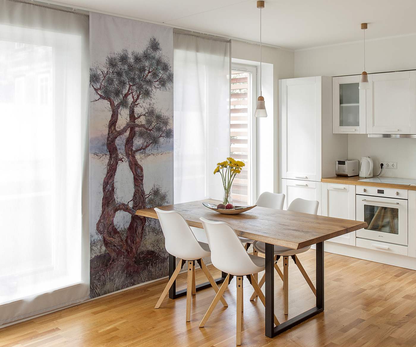 Ilme Rätsep Disain OÜ Autoridisainiga akna- ja seinatekstiilid Ööbiku 15, 11311 Tallinn, Harjumaa +372 5615 6180 ilme@ilmeratsep.com www.ilmeratsep.com Sisustustekstiilid, mis loovad meeleolu! Tekstiilikunstnik Ilme Rätsepa loodud eriilmelised interjööritekstiilid ühendavad endas professionaalse siidimaali ja innovaatilise tehnoloogia. Kunstnik püüab luua pintsli ja värviga tervikut, mille sisuks on elus olemise hetked ja tunded ning maailma mõistmine. Sisustustekstiilide tooteinfo: Tootekataloog 2022 Maalitud ja prinditud kangad sobivad paneelkardinateks, ruloodeks, seinatekstiilideks ja ruumijagajaks. Seinatekstiil on suurpärane kingitus sõbrale, kallile inimesele, töölt lahkuvale kolleegile. Kõik kangad on valgus- ja värvikindlad. Kangas ei pleegi ega muutu hapraks ka intensiivse päikese käes. Puhastamine on lihtne, 40° juures pesumasinas. Ainult tugev tsentrifuugimine (max 700) pole soovitav see raskendab triikimist. Kõiki kangaid triigitakse auruga pahemalt poolt. GARANTII kehtib kangastele tingimusel, et toodet on kasutatud ja hooldatud vastavalt juhendile. Kardinatele, aknapaneelidele, ruloodele, roomakardinatele, ruumijagajatele ja seinatekstiilidele on sihipärase tarbimise puhul 5 aastane garantii. Garantii ei laiene konstruktsioonidele. PANEELKARDINAD on loovaks lahenduseks suurte akendega interjööris. Sirgelt langevad paneelid näitavad oma visuaali toa poole ja võivad mõjutada kogu interjööri meeleolu. Paneele võib kasutada ka ruumijagajate või garderoobi ustena. Paneelkardin koosneb paneele kandvast mehhanismist ning selle külge kinnituvatest üksteise taha liikuvatest paneelidest. Paneelide kõrguse ja arvu määrab akna ja seina suurus. Paneelkardina küljed on palistatud, ülemises servas takjapael, allumises servas raskuslatt. Võimalik tellida juba olemasolevatele paneelkardina siinidele. Paneelkardina hind sõltub valitud kangast ja mõõtudest. Siinide konstruktsioon hinda ei kuulu. RULOOKARDINAD on väga praktiline lahendus akna ees. Hästi valitud ruloo on ka suurepärane kujunduselement. Võimalik ainult kangast satiin 115, väiksema akna puhul ka poolpimendav veluur. Rulookardina servad on lõigatud, alumises servas tunnel koos puitliistuga. Kardinat on võimalik kleepida juba olemasolevale ruloorullile või tellida koos konstruktsiooniga (konstruktsioon ei ole kanga hinna sees). Valmistatakse vastavalt tellija mõõtudele. SEINATEKSTIILID on interjööri kujunduslik osa. Ka väga minimalistlikus sisekujunduses on pildimaagia „oma koha“ identiteedi loomisel vajalik. Seinatekstiilil on mitu head omadust: mõõdud on paindlikud, lihtne paigaldada ja vahetamise korral ei vaja hoiustamiseks suurt ruumi. On võimalik alati tellida seina pindalale vastavas suuruses. Seinatekstiili küljed on palistatud, ülemises ja alumises servas puidust ümarliistud, ülemise serva ümarliist on varustatud aaskruvidega. Seinatekstiilid: Siidimaalid: Lõuendid: KANGAD Satiin 115, läikiv, läbipaistmatu, ei pimenda. Rulood, paneelkardinad, seinatekstiilid, kotid, lipsud. Õhem kanvaa, mati faktuuriga, läbipaistmatu, poolpimendav. Paneelkardinad, ruumijagajad, seinatekstiilid ja sõnumiga kotid. Veluur, paksem, pehme karvastatud faktuuriga, poolpimendav. Mööblikatted, väiksemad rulood, ruumijagajad, kapiuksed, kotid, pajalapid ja kindad. KOTID, mis räägivad oma lugu. Poekott peab olema mahukas, vastupidav ja pestav. Sõnumiga koti esikülg on pildiga, sangad ja küljed sobivas toonis või mustast kangast. Masinpesu 40°. MÖÖBLIKATTED on toode, mis sündis praktilisest vajadusest katta uue kangaga mõned üle eelmise sajandi toolid. Kangaks on vastupidav veluur, pehme, sametise faktuuriga. PAJALAPID JA -KINDAD. Köök on kodu süda, seal toimub alati midagi. Köök võib olla väike või suur, põhjamaiselt askeetlik või lõunamaiselt lopsakas. Väike aksessuaar annab köögile oma sära ja kutsub tegutsema. Pajalapid ja -kindad on veluurile prinditud pildiga ja mustast kangast sisepindade ja kandiga. Kuumakindlad ja pestavad. Me omandame 90% informatsioonist silmadega. See mida näeme ja vaatame mõjutab meie tundeid, mõtteid ja tegusid. Ilme Rätsep Disain Tegevusalapuuga seotud valdkonnad: • kangaste müük, kangapoed, sisustuskangad • rulood, voldikkardinad, markiisid • valmiskardinad • kodumaine valmismööbel, valgustid, viimistlustooted • lauamatid, laudlinad, rätid, pleedid • sisustuselemendid, sisustusaksessuaarid