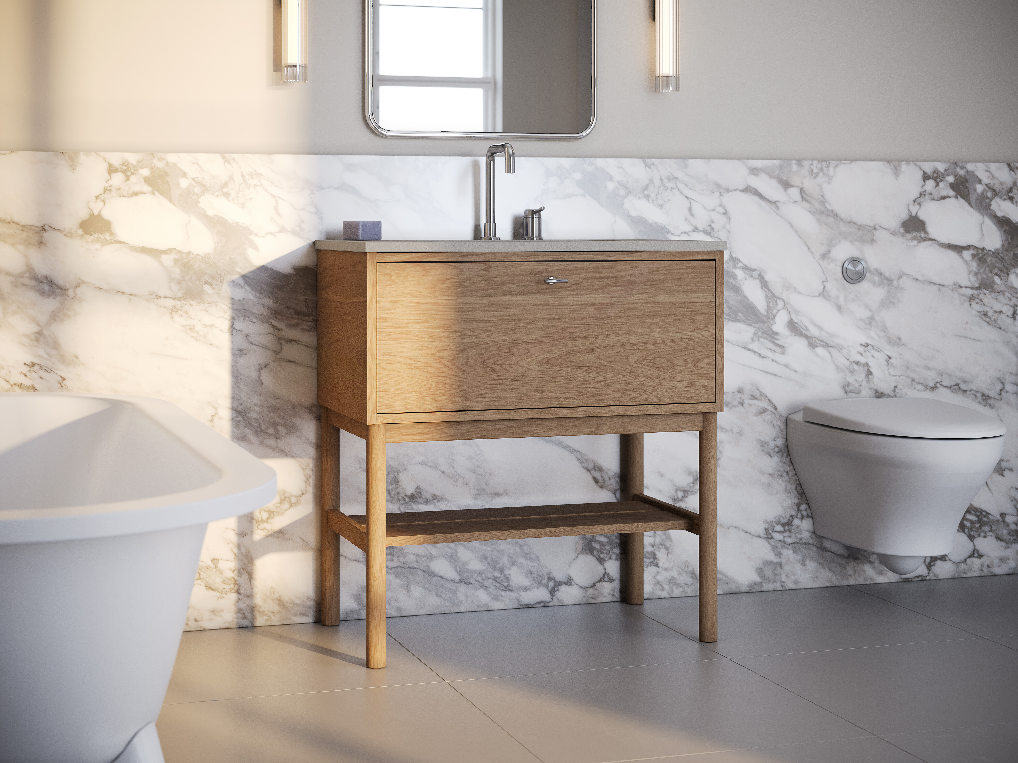 Julgus olla ajatu: Gustavsbergi uus kollektsioon Ducentic SISUSTUS | VANNITUBA Kaasatud ekspert:Aivi Paju 06.03.2026 Jaga: Vannitoakollektsioon Ducentic Ajalugu ja kaasaegne minimalism põimuvad uues vannitoakollektsioonis Ducentic, mille tõi oma 200. tegevusaasta puhul turule Rootsi bränd Gustavsberg. Kui paljud tänased vannitoatrendid rõhutavad julgeid kontraste ja efektseid vorme, siis Ducentic liigub teises suunas – rahuliku, voolava ja ajatu disaini poole. Kollektsiooni nimi Ducentic tähendab ladina keeles kakssada ja viitab sümboolselt Gustavsbergi kahe sajandi pikkusele kogemusele ja meisterlikule käsitööle. Uus kollektsioon ei rõhu hetketrendidele, vaid pakub sisustushuvilistele ajatut ja tasakaalukat alternatiivi – vannituba, kus disain ei konkureeri ruumiga, vaid toetab seda. Juubelikollektsiooni loomisel ammutati inspiratsiooni Gustavsbergi pikaajalisest portselani ja vannitoasisustuse tootmise kogemusest, mis ulatub aastasse 1825. Tulemuseks on sari, kus iga detail – alates segisti kumerusest kuni kapi proportsioonideni – on hoolikalt tasakaalustatud. Ducenticu vormikeel on pehme ja järjepidev. Järskude üleminekute asemel sulanduvad pinnad üksteiseks, luues viimistletud ja harmoonilise terviku. Kivist tööpind ja selle alla kinnituv keraamiline valamu moodustavad selge horisontaalse joone, mis mõjub ruumis arhitektuurselt ja rahustavalt. Looduslikud materjalid Kollektsiooni keskmes on materjalid. Tamm – nii heledas kui sügavas tumepruunis toonis – toob interjööri soojust. Kivi lisab väärikust ja massiivsust, teras ja messing annavad peene aktsendi ning portselan, millele Gustavsbergi ajalugu toetub, loob puhta ja ajatu aluse kogu kontseptsioonile. Segistid ja peadušiga dušikomplektid on saadaval kroomi- ja messingviimistluses ning mõjuvad ruumis pigem skulpturaalse detailina kui pelgalt tehnilise elemendina. Paindlikkus ruumikujunduses Valamukapid on loodud nii põrandale toetuvate jalgadega kui ka seinale kinnitatavatena. See võimaldab mängida ruumitunnetusega: jalgadega kapp lisab klassikalist elegantsi, seinakinnitus aga rõhutab modernset minimalismi ning jätab põrandapinna visuaalselt avatumaks. Ducentic pole pelgalt vannitoamööbli sari – see on kaasaegne disainilugu, mis räägib kvaliteedist, pärandist ja tulevikust. Hoolikalt valitud materjalid, ajatud vormid ja põhjamaine elegants teevad sellest kollektsioonist väärika täienduse igasse interjööri. Vaata lähemalt Gustavsberg OY Eesti filiaalvannitoamööbel, dušinurgad, WC-potid, segistid, valamud, vannid, vannitoatarvikud F.R.Faehlmanni 6, 10125 Tallinn, Harjumaa +372 646 0312 www.gustavsberg.eeVaata profiiliGustavsberg AB on Skandinaavia üks juhtivaid vannitoatoodete tootjaid. Valikus valamud, vannid, vannitoamööbel, dušikabiinid ja -seinad, WC-potid, segistid vannituppa ja kööki.