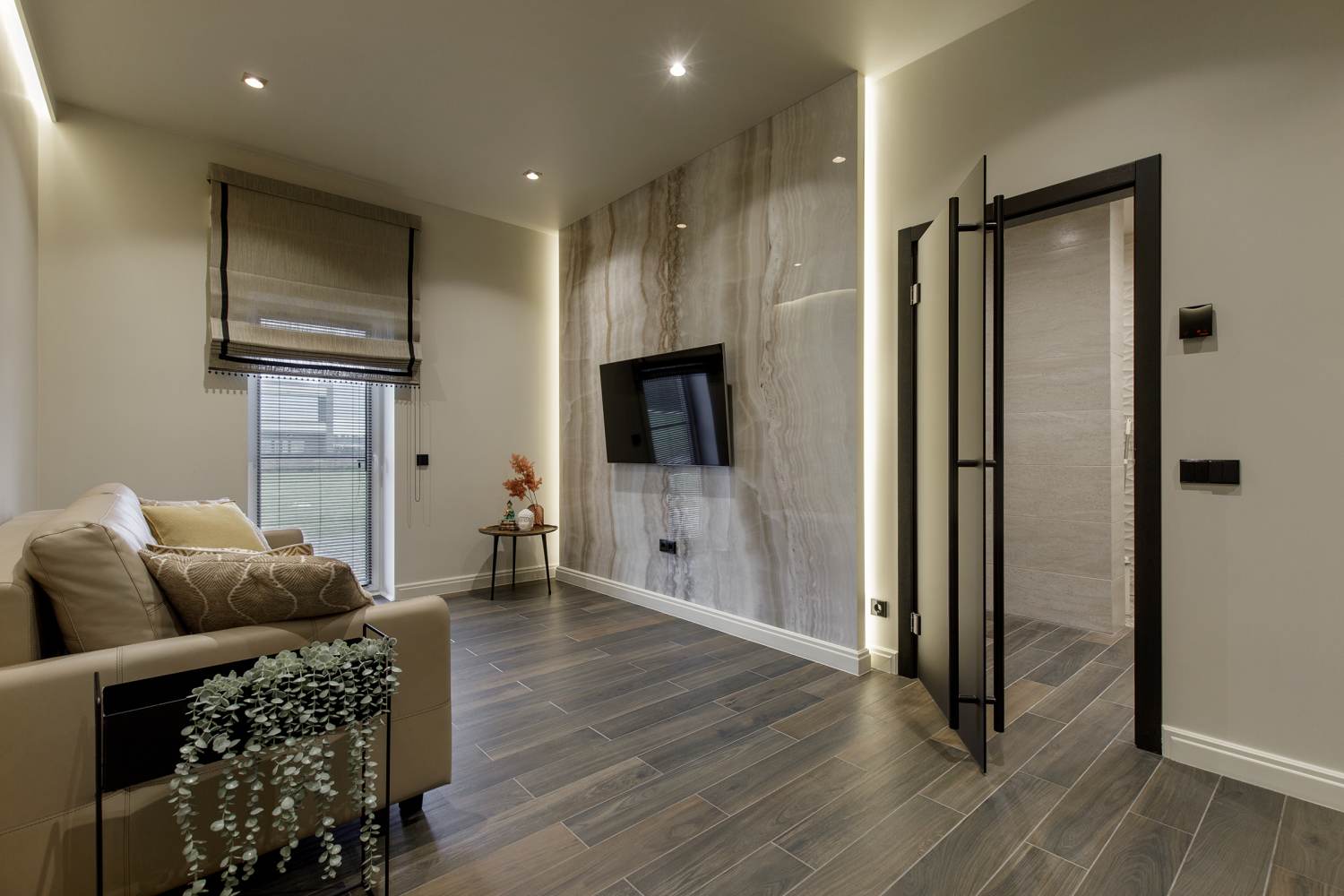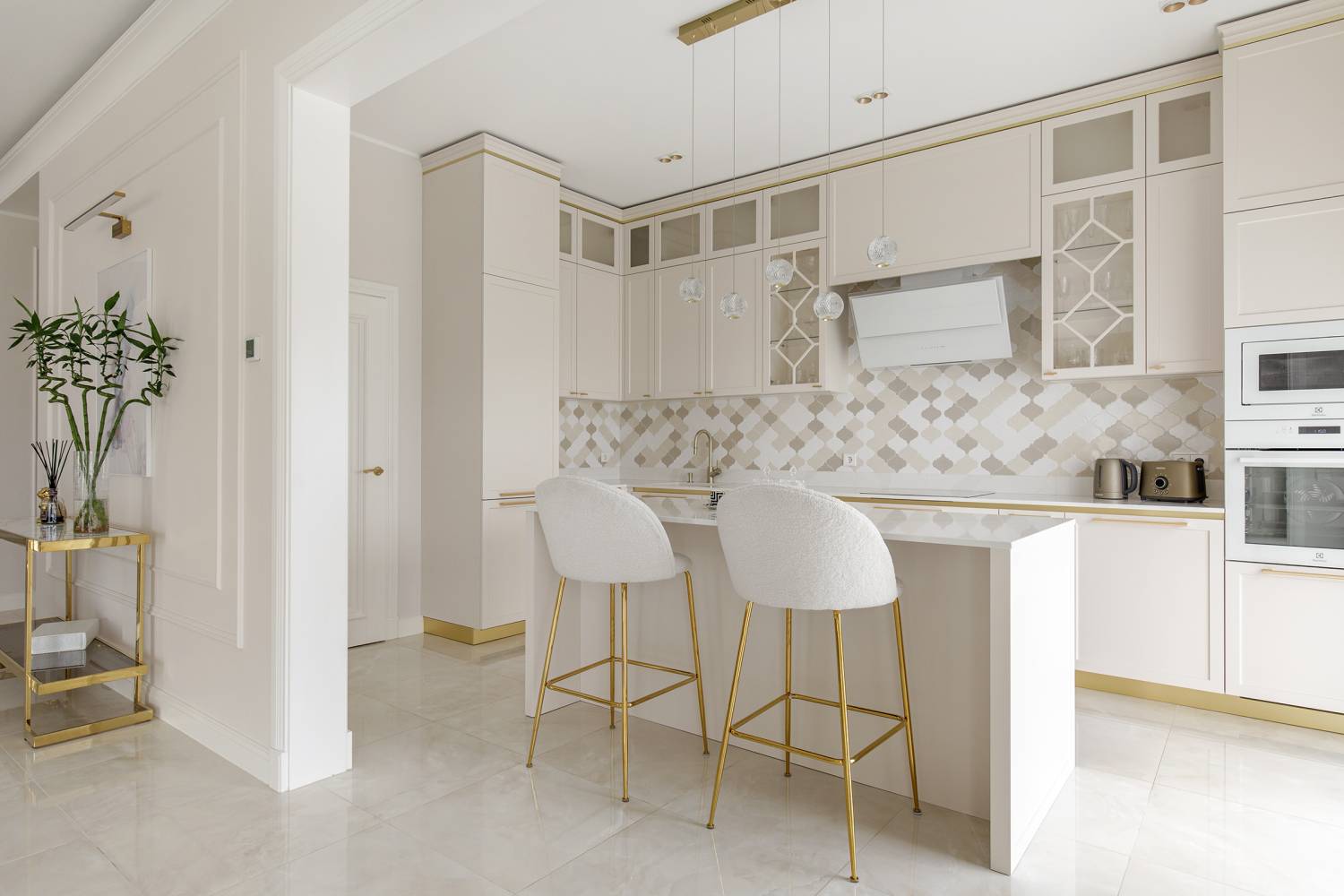 Rahulik kodu kaasaegse klassika võtmes SISEKUJUNDUS | GALERII Kaasatud ekspert:Tatiana Bobchinskaya 17.04.2024 Jaga: Fotod: Andrei Chertkov Kuigi sisekujundaja Tatiana Bobchinskaya armastab nii ise kui ka oma töödes mahlakaid kombinatsioone ja intensiivseid värve, jõuavad temani ka projektid, kus särtsaka interjööri asemel peab valitsema rahulikkus ja monokroomsus. Kui kliendi soov Sinilille elurajoonis Tiskres oli luua beežides ja valgetes toonides kodu kuldsete aktsentidega ning seda kõike kaasaegses klassikalises stiilis, liikusid Wax Design sisekujundusstuudio sisekujundaja mõtted kohe art deco elementide suunas. Kuna maja välisilme on aga kaasaegne, tuli leida kompromiss, mis seoks kaks esmapilgul kokkusobimatut suunda, kaasaegse ja klassikalise. Järgnevalt avame, kuidas need stiilid õnnestus harmooniliselt ühte tervikusse sulandada. Elutuba Selles kodus on elutuba ühendatud söögitoaga, kuid sellest hoolimata võlub ruum esimesel pilgul oma avaruse, valguse ja puhtusega. Puudub ülekoormatuse, ruumipuuduse ja liigse kuhjamise tunne. Klassikalisele suunale viitavad siin selge sümmeetria ja rütm. Laua kohal on kaks lühtrit, televiisori suhtes sümmeetriliselt kaks seinalampi ning seinamaalid on paigutatud paarikaupa. Klassikalise meeleolu rõhutamiseks valiti seinte ja lagede viimistlemiseks Moonavoor Seinakattestuudiost lae-, seina- ja põrandaliiste. Kaasaegsust lisab ruumile lae perimeetril paiknev moekas LED-valgustus. See aitab laepinda visuaalselt kõrgemana tajuda ning loob ühtlasi mõnusa taustavalguse, mis sobib eriti hästi õdusateks õhtusteks kogunemisteks. Söögitsoon on nii avar, et sobivas mõõdus laua leidmine osutus sisekujundajale parajaks väljakutseks. Lahendus siiski leiti ning hubast õhkkonda loovad laua lakoonilised ja kaasaegsed jooned, mis sobituvad hästi InetrioHome ümara kujuga toolidega. Toolide lihtsatele vormidele annavad iseloomu kullatud metalljalad, mis haakuvad elegantsete lühtritega. Rippuva lühtri mitmekihiline metallraam ja klaaselemendid loovad ruumis vertikaalse mustri ning lisavad sära, mis on art deco stiilile omane. Suur ja mugav diivan on valminud sisekujundaja visandite põhjal, et istumismugavust jätkuks nii pereliikmetele kui ka külalistele. Tähelepanu väärib ka TV-tsooni lahendus. Telekapi all paiknev viiemeetrine madal kapp on kinnitatud seinale, et ruum püsiks visuaalselt kerge. Kaasaegne viimistlus, rihveldatud esipaneelid ja õrn kuldne detail muudavad selle pilgupüüdjaks, mis võtab oma vihjeid seinavalgustitest ja laelühtritest. Puhkeala terviku seob kokku Iskust pärit viskoosvaip, mis paneb kooskõlale elegantse punkti. Köök „Niivõrd avarast ja mahukast köögist võisin vaid unistada!“ vaimustus koduomanik, kui Idema Köögid olid mööbli paigalduse lõpetanud. Ka sisekujundaja jäi tulemusega rahule, sest köök kujunes tõepoolest piisavalt suureks ja funktsionaalseks ning mõjub ühtlasi muljetavaldavalt tervikliku ruumina. Köögi keskmes paikneb saar, mis teeb liikumise sujuvaks köögi nn kuldse kolmnurga piires, külmiku, kraanikausi ja pliidi vahel. Köögisaare ääres olevad baaritoolid annavad sellele ka teise rolli, see on koht, kus on mõnus suhelda ja koos olla. Et heledates toonides köök ei mõjuks liiga steriilsena, otsustas sisekujundaja katta tagaseina pritsmeseinad klassikalises laadis keraamiliste plaatidega kolmes eri värvitoonis. Nii lisandub ruumi värskust ja iseloomu. Esik ja garderoob Majja projekteeritud esik osutus paraku nii väikeseks, et riietekapi paigutamine sinna oli keeruline. Et mitte koormata piiratud ruumi üle, pakkus sisekujundaja välja praktilise lahenduse, sissepääsule kõige lähemal asuv tuba kujundati täielikult garderoobiks ning suur üleriiete kapp leidis oma koha just seal. Esiku seinad kaeti Moonavoor Seinakattestuudio seinapaneelidega ja lisati maast laeni ulatuv peegel, mis avardab ruumi visuaalselt. Seinapaneelidele kinnitati ka dekoratiivsed konksud, mis lisavad nii praktilisust kui ka viimistletud muljet. Magamistuba Magamistuba oli ainus ruum, kus koduomanik soovis kasutada tapeeti, et lisada interjöörile veelgi rohkem hubasust. Valik langes Moonavoor Seinakattestuudio Art Deco kollektsiooni tapeedile. Ruumi keskpunktiks kujunes suur voodi pehme peatsiga, mis valmis sisekujundaja visandite põhjal. Voodi vastas paikneb mahukas liugustega riidekapp, mille joontes on samuti märgata art deco mõjutusi. Hubast meeleolu toetavad vaip ning ümarate vormidega tugitoolid, mis haakuvad hästi seinavalgustite ja Hektor Lighti laelühtri vormikeelega. Taustavalgustuseks saab kasutada nii laeliistude alla peidetud valgustust kui ka seinavalgusteid. Vannituba Vannituba Koduomaniku visioon vannitoast oli hele ja ilus. Selle saavutamiseks lähenes sisekujundaja Tatiana Bobchinskaya vannitoa kujundamisele justkui oleks tegu eluruumiga, kus loeb mitte ainult praktilisus, vaid ka meeleolu. Seinu katavad keraamilised plaadid, mis meenutavad seinapaneele ja loovad mustreid, mis mõjuvad peaaegu nagu tapeet. Plaadid on valitud Plaadipunkti valikust. Mööbel sulandub ruumi loomulikult ning peegli kohal ripuvad valgustid lisavad pehmust ja elegantsi. Koos sünnib tulemus, mis meenutab pigem hubast elutuba kui tavapärast vannituba. Hommikut siin alustades saab tunda ilu, harmooniat ja värsket energiat, mis saadab edasi kogu päeva. Kuna koduomanik peab lugu kodustest spaaprotseduuridest ja enda eest hoolitsemisest, pidi dušiala olema avar. Dušinurk ehitati osaliselt kipsist ja kaeti plaatidega, mis muudab ruumi hooldamise lihtsamaks. Nii ei tõmba klaaspinnal kuivavad veepiisad ja lubjajäljed liigselt tähelepanu ning üldmulje püsib alati puhas ja viimistletud. Duširuumi lisati mosaiigiga viimistletud pink ning seinasüvendid, kuhu saab mugavalt asetada šampoonid ja muud tarvikud. Dušinurga ehituse käigus tekkisid ka täiendavad nišid, kuhu paigutati kapid rätikute hoiustamiseks ning koht musta pesu kogumiseks. Spaatuba Spaatuba