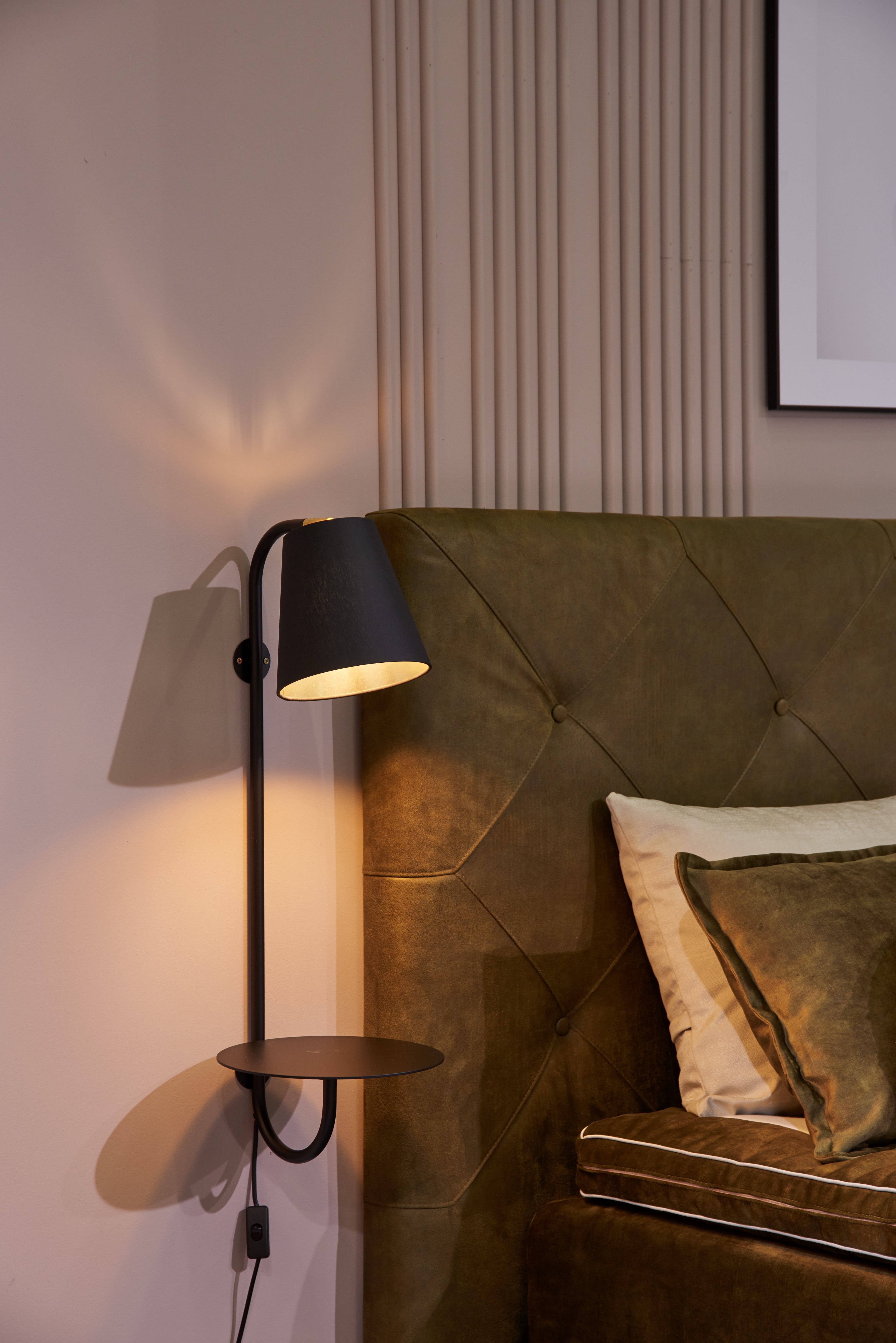 Saxo eristub oma nutika lahenduse poolest: valgustiga on integreeritud väike lauake, mis muudab selle eriti sobivaks lugemisnurka, diivani või tugitooli kõrvale, magamistuppa või hotelli- ja lounge-aladesse. See detail lisab kasutusmugavust ilma disaini üle koormamata.